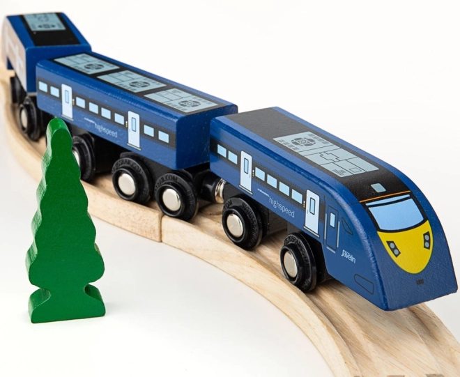Viaggia con stile con il modello in legno del treno ad alta velocità di Bigjigs Rail. Questo treno splendidamente lavorato è il complemento perfetto per la tua rete ferroviaria in legno.