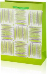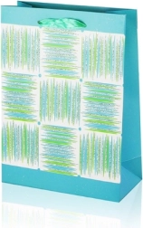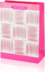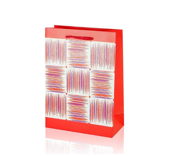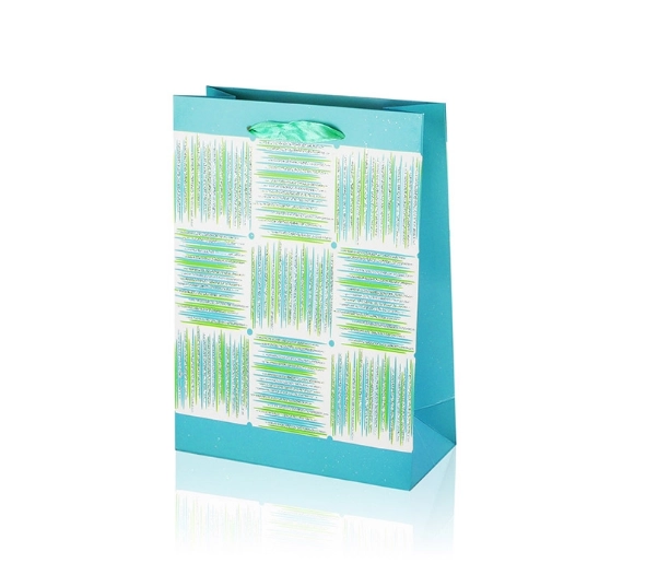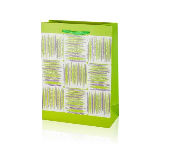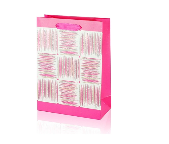 Questa shopper regalo A5 combina dimensioni pratiche e design accattivante. La superficie lucida, il pannello decorativo a righe e i manici a nastro conferiscono al tuo regalo un aspetto premium. La borsa ha lati pieghevoli e fondo rinforzato per una maggiore stabilità durante l’inserimento degli oggetti.