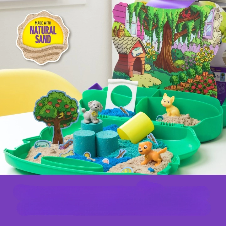 Con questo set portatile i bambini possono creare il proprio parco per cani ovunque e in qualsiasi momento. La sabbia cinetica si modella alla perfezione, mantiene la forma e grazie alle sue proprietà non si disperde ai lati. La valigetta funge da vassoio da gioco e da pratico contenitore per tutti i pezzi, così riordinare dopo il gioco è questione di attimi.