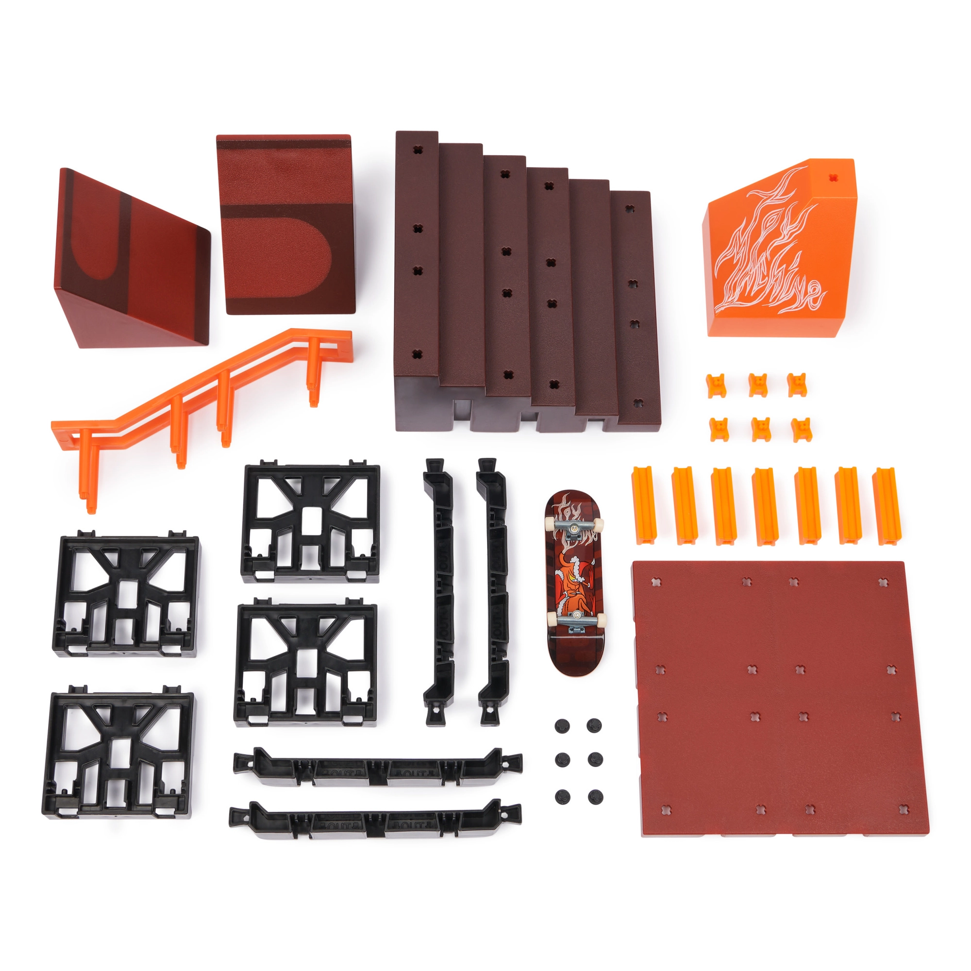 Crea la tua configurazione e migliora le tue abilità di fingerboarding. Il set include una piramide, rampe a cuneo, scale, un rail e i connettori X-Connect che permettono di cambiare rapidamente il layout. Ideale per principianti e avanzati, compatibile con altre rampe della serie.
