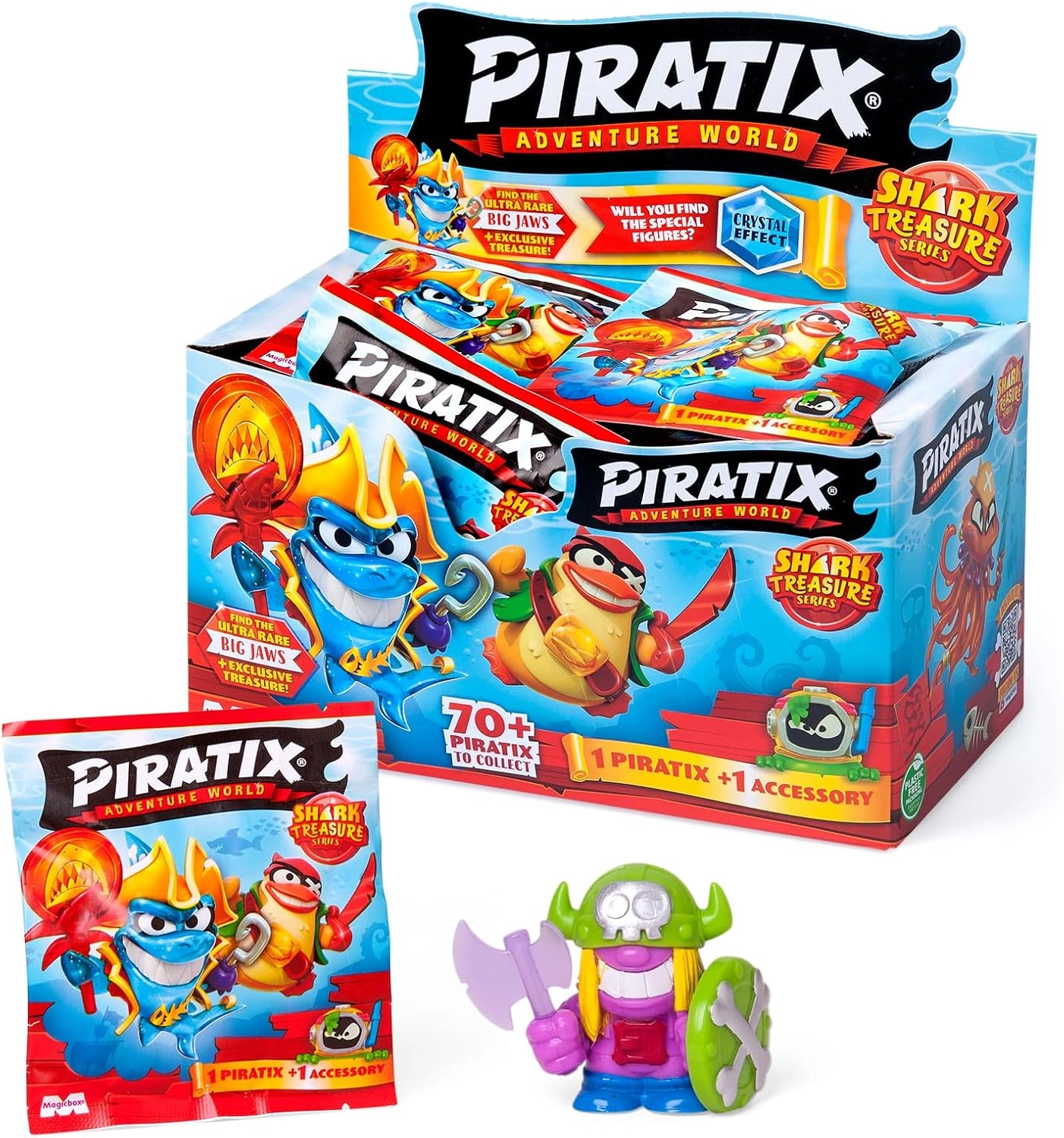 Avventurati nel mondo entusiasmante di Piratix Adventure World – Shark Treasure, dove ti aspettano tesori nascosti, duelli tra pirati e suspense a ogni passo. Ogni bustina contiene una figurina a sorpresa e un accessorio a tema, rendendola un fantastico pezzo da collezione per piccoli esploratori.