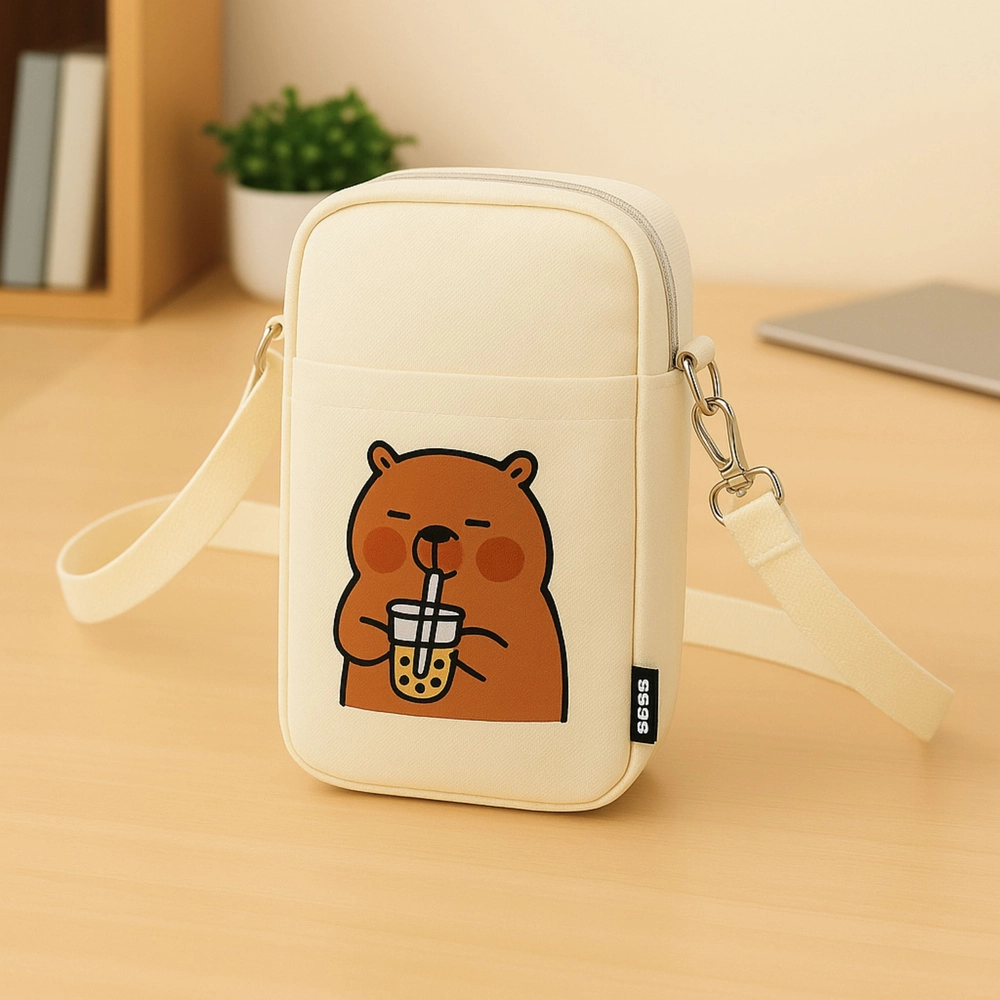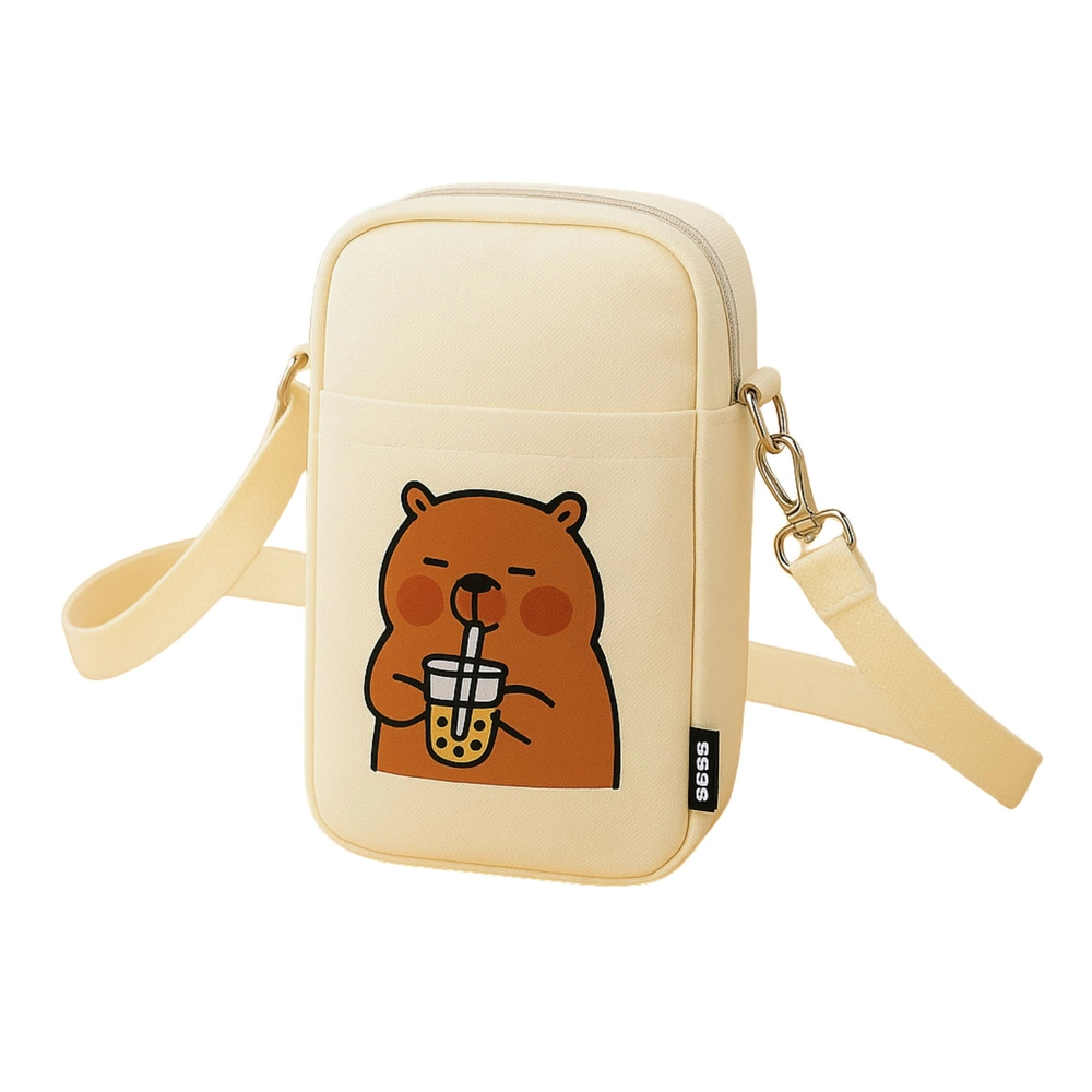 Grazie alla tracolla regolabile puoi impostare facilmente la lunghezza in base alla tua statura. Lo scomparto principale con zip custodisce in sicurezza l’essenziale, mentre la tasca frontale aperta permette un accesso rapido ai piccoli oggetti. La stampa frontale con una simpatica capibara e bubble tea dona alla borsa un look originale che piace a bambini e adulti.