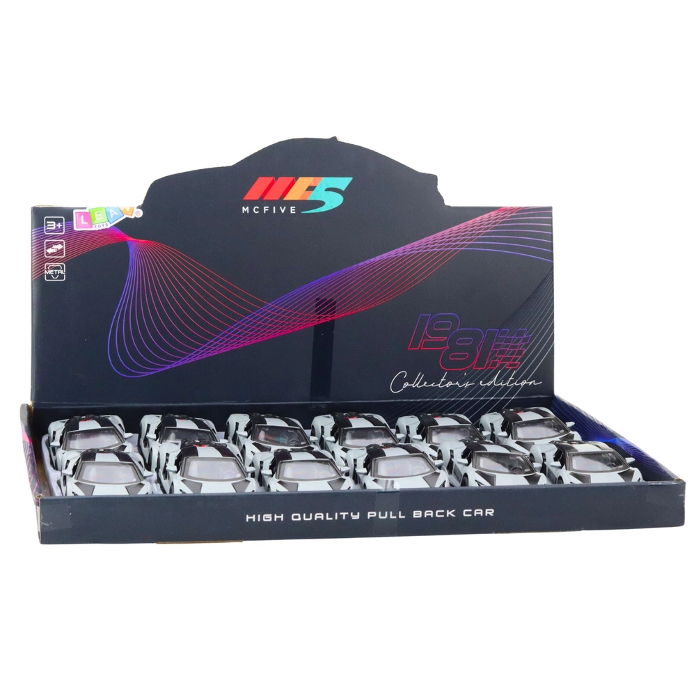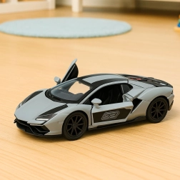 Elegante auto da corsa in metallo in scala 1:32 che entusiasmerà piccoli e grandi appassionati della velocità. Offre una carrozzeria in metallo robusta, portiere apribili per un gioco più realistico e un avvincente meccanismo a retrocarica (pull-back), grazie al quale basta tirare indietro, rilasciare e partire in gara. Le dimensioni compatte e il design sportivo in colore grigio con dettagli neri la rendono un giocattolo ideale e anche un pezzo da collezione.