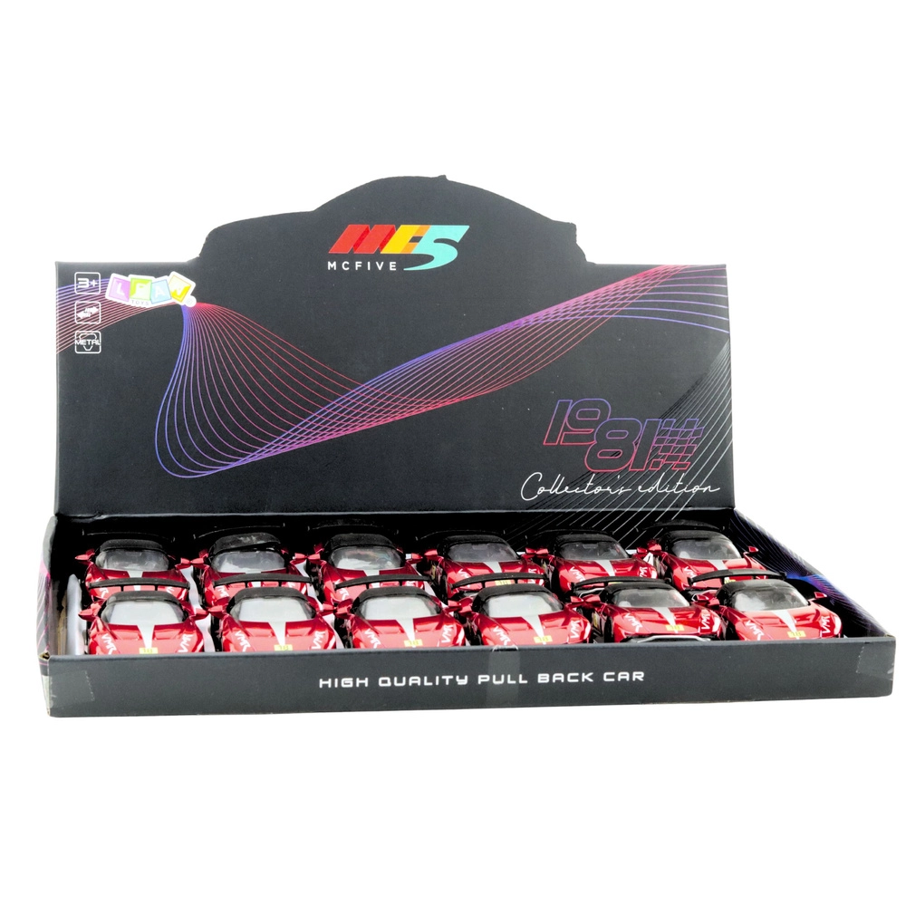La vivace carrozzeria rossa, le grafiche da gara e il grande alettone posteriore rendono la macchinina un pezzo accattivante per il gioco e l’esposizione.