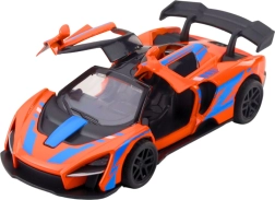 Modello elegante di auto sportiva in scala 1:32 con carrozzeria in metallo, porte apribili e meccanismo pull-back per una guida dinamica. Grazie alla cura dei dettagli, al look sportivo e alla struttura resistente è ideale sia per il gioco che per la collezione.