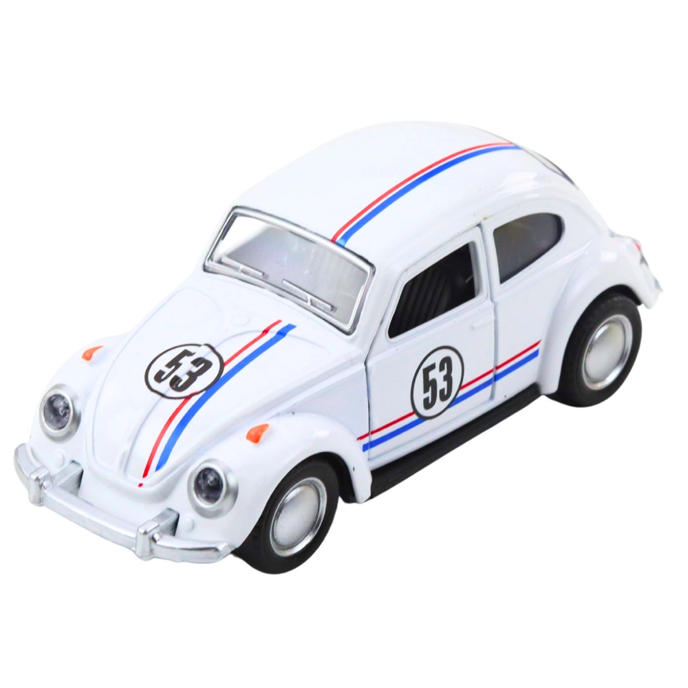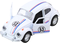 Elegante modello in metallo ispirato al leggendario “Maggiolino” in scala 1:32, perfetto per bambini e collezionisti. Offre una carrozzeria in metallo, un avvincente motore a retrocarica per corse veloci, porte apribili e finiture dettagliate nell’elegante colore bianco.