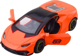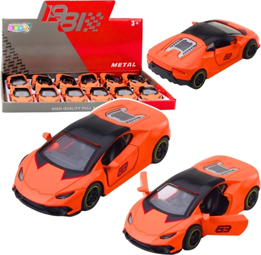 Elegante macchinina sportiva in metallo in scala 1:43 che farà felici piccoli piloti e collezionisti. Ha una carrozzeria in metallo, portiere apribili e un meccanismo a retrocarica pull-back per una guida veloce e divertente. Dimensioni compatte, design aerodinamico e la vivace colorazione arancione con dettagli neri la rendono un ottimo giocattolo e un modello decorativo.