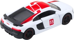 Grazie alla robusta struttura die-cast in metallo e plastica, il modello è resistente e adatto all'uso quotidiano su superfici piane. La carrozzeria bianca con dettagli rossi e grafiche sportive ha un aspetto dinamico ed è perfetta anche in vetrina.