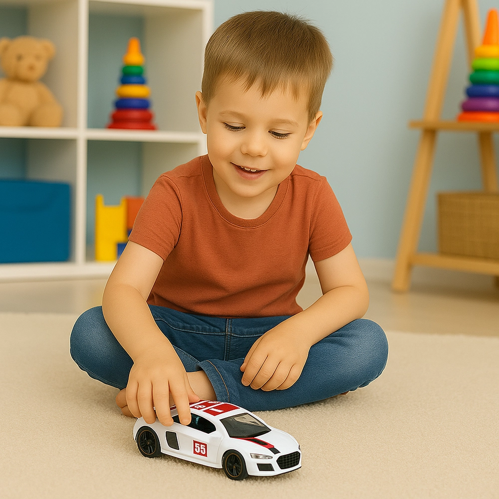 Scopri il divertimento con la macchinina sportiva in metallo in scala 1:43, che unisce design elegante e funzioni che incentivano il gioco. Il meccanismo pull-back consente all'auto, una volta caricata, di scattare in avanti, mentre le portiere apribili amplificano il realismo e ispirano un gioco immaginativo.