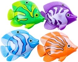 Il set include quattro pesciolini variopinti che nuotano bene e sono facilmente visibili in acqua – ideali per giochi di velocità e precisione.