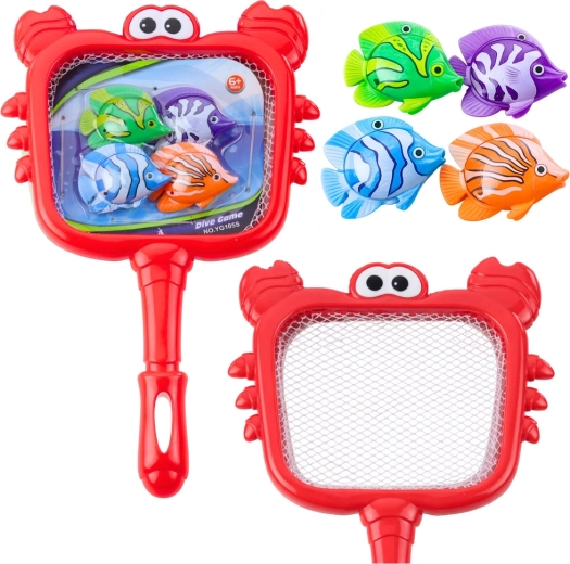 Set per pescare pesciolini con retino a forma di granchio e 4 pesci colorati per l’acqua