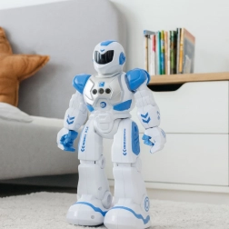 Il robot interattivo SMART BOT è stato progettato per i bambini che amano i giochi intelligenti. Il design futuristico, gli elementi retroilluminati e i movimenti fluidi garantiscono un divertimento attraente e duraturo. Il robot sa muoversi in tutte le direzioni, ruotare di 360°, muovere le braccia, parlare, riprodurre melodie e ballare – tutto controllabile facilmente con il telecomando incluso.