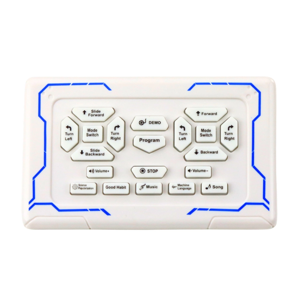 Il radiocomando intuitivo con tasti per direzione, scorrimento, musica, demo, programmazione e volume permette ai bambini di padroneggiare rapidamente tutte le funzioni del robot.