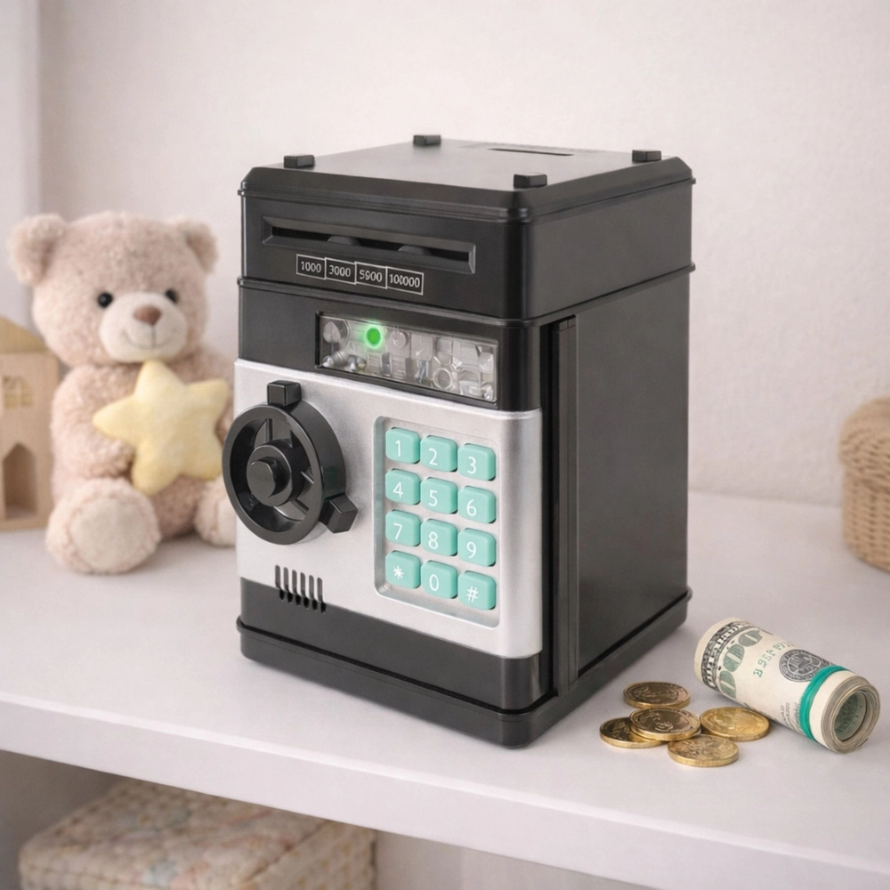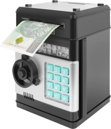 Dopo il montaggio funziona come un salvadanaio con codice PIN, ha un tastierino numerico, accetta banconote e monete e grazie agli effetti sonori l'utilizzo è ancora più divertente. L'aspetto realistico ricrea la sensazione di una vera cassaforte bancaria, rendendo il risparmio davvero coinvolgente per i bambini.