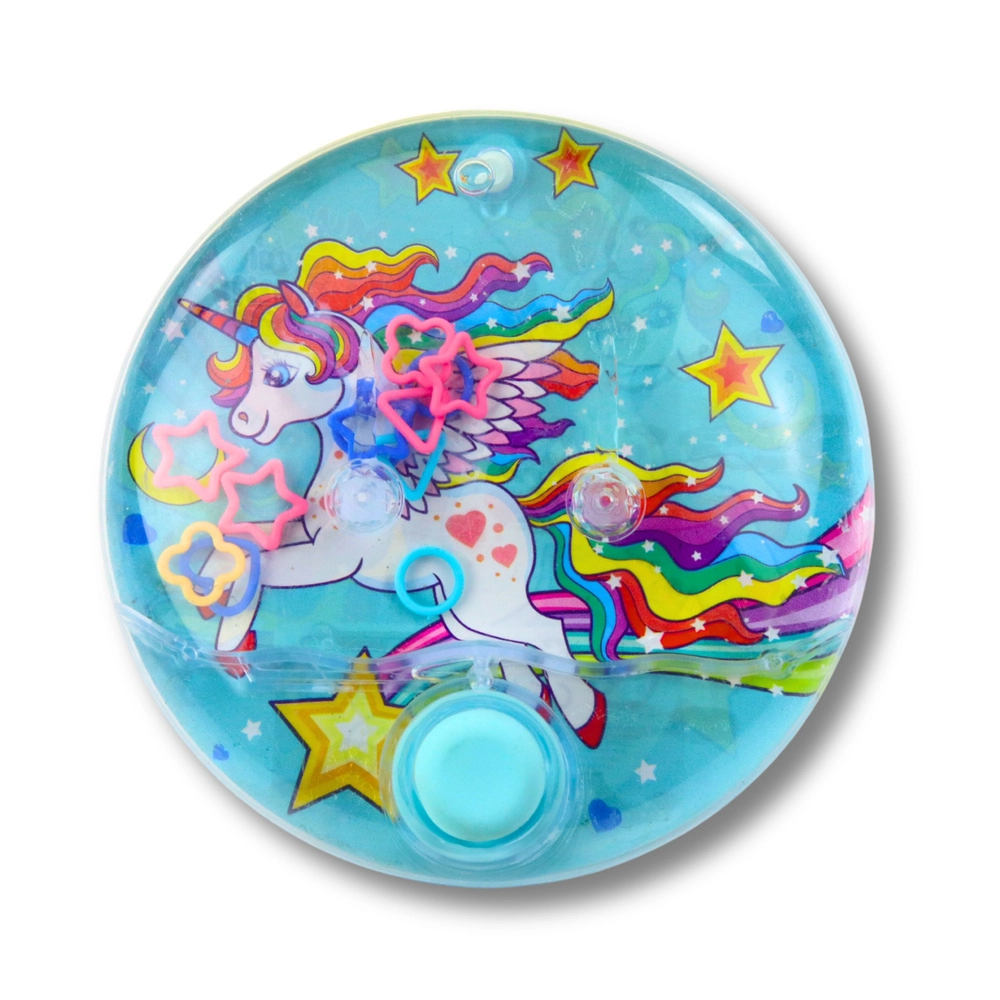 Il gioco d’acqua tascabile con motivo unicorno conquista i bambini con il suo design colorato e il semplice controllo senza batterie. Con un solo pulsante metti in movimento gli anelli nell’acqua cercando di infilarli sui piolini – un divertimento perfetto per allenare la motricità fine, la coordinazione occhio–mano e la concentrazione. Il pratico diametro di 10 cm è ideale per i viaggi, l’asilo e la casa.