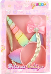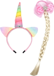 Il set per bambini Unicorno è ideale per le piccole amanti della fantasia. Il cerchietto con corno e orecchiette dona a ogni acconciatura un tocco fiabesco, mentre l’elastico con lunga treccia e vistoso fiocco rosa crea un accento delicato e femminile. I materiali sono leggeri e confortevoli, per garantire comodità e sicurezza anche durante un uso prolungato.