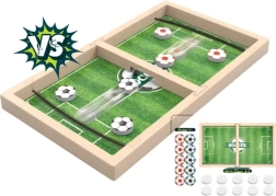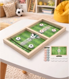 Questo gioco di destrezza da tavolo a tema calcio è progettato per duelli rapidi e avvincenti tra due giocatori. I giocatori lanciano le pedine con elastici cercando di segnare nella porta avversaria. Ogni mossa mette alla prova precisione, riflessi e tattica – ideale per bambini e adulti.