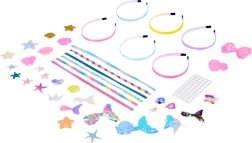 Il kit favorisce lo sviluppo della fantasia, della coordinazione occhio–mano e del senso del colore. I cerchietti finiti sono perfetti per l’uso quotidiano, le feste e i travestimenti. Grazie ai motivi marini come conchiglie, stelle marine e codine da sirena, nasceranno accessori per capelli incantevoli, perfetti per le foto e per il gioco.