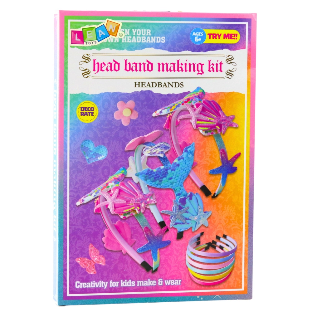 Scopri un divertente kit creativo per bambini con cui realizzare facilmente cerchietti in colori pastello a tema marino. Grazie alle decorazioni autoadesive, la creazione è semplice, sicura e senza colla né forbici. Il kit sviluppa creatività, motricità fine e permette di creare accessori originali con scaglie, stelle marine e codine da sirena.