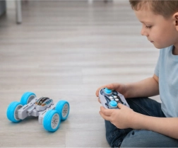 Il telecomando consente di guidare avanti/indietro e sinistra/destra, mentre le luci LED esaltano lo spettacolo in ogni acrobazia. Il gioco sviluppa coordinazione, riflessi e motricità fine dei bambini e, grazie alle batterie integrate, l’auto è pronta all’azione dopo una breve ricarica.