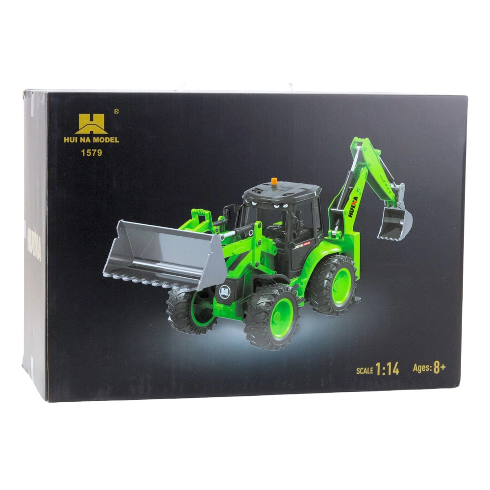 Trattore escavatore RC a ruote HUINA 1:14 verde con luci e suoni