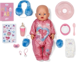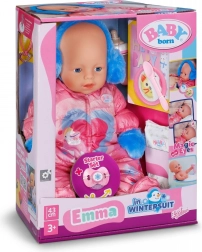 La bambola BABY born Emma, alta 43 cm, è perfetta per i piccoli caregiver. Indossa una tuta invernale alla moda con morbidi paraorecchie pelosi e guantini, pronta per ogni avventura. L’aspetto realistico e le possibilità di cura favoriscono il role‑play e insegnano ai bambini l’empatia.