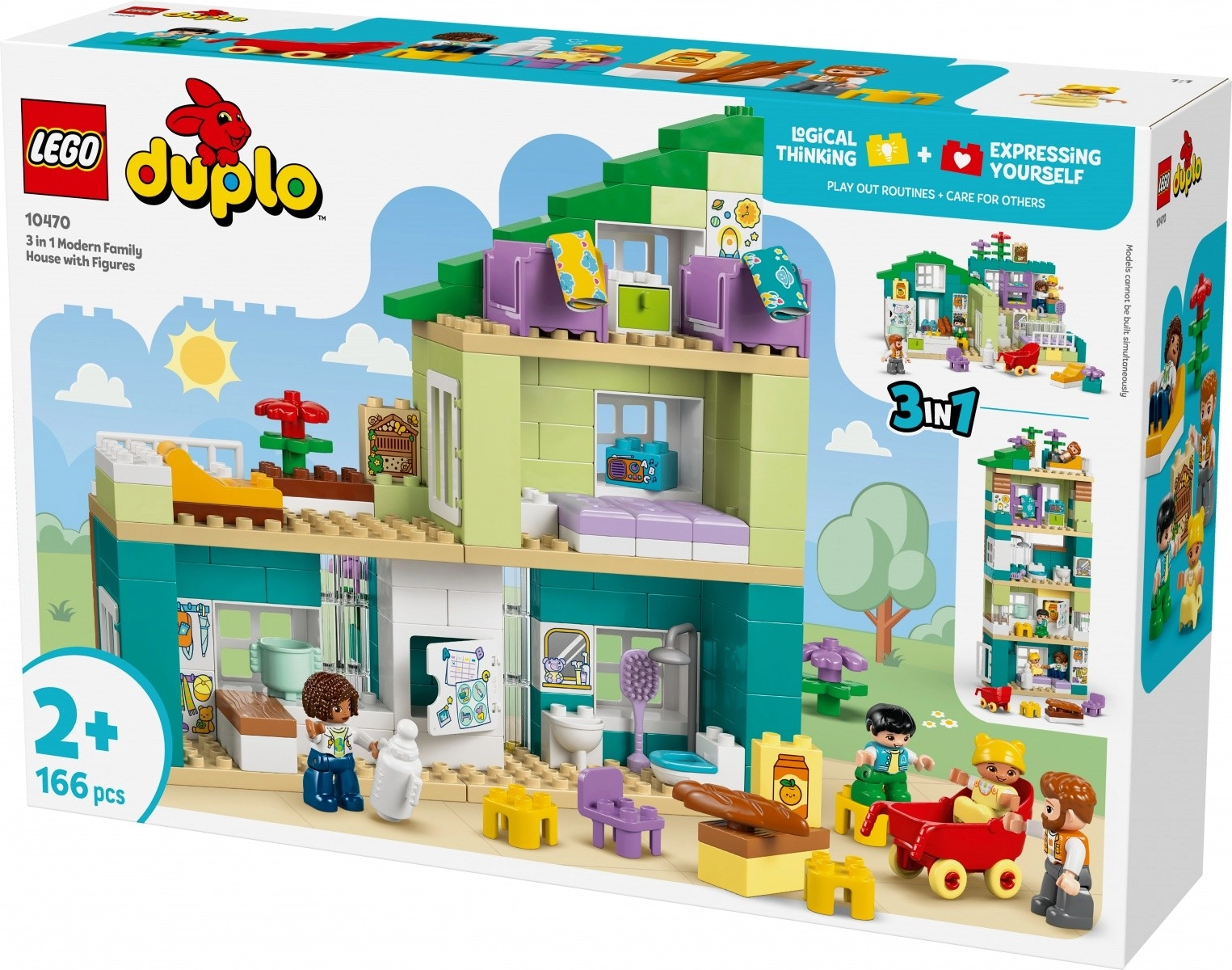 LEGO DUPLO Casa familiare moderna 3 in 1 offre infinite possibilità creative ai bambini. Grazie alle tre varianti di costruzione, i piccoli costruttori troveranno sempre nuove disposizioni delle stanze e dettagli da scoprire. I pezzi colorati, facili da maneggiare, e gli accessori ben studiati ispirano a raccontare storie di vita reale.