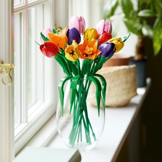 Scopri un modo creativo per valorizzare gli interni: questo set della linea LEGO Botanicals permette di costruire un suggestivo bouquet di tulipani con fiori finemente lavorati nelle tonalità del rosso, giallo, rosa, arancione e viola. Gli steli regolabili e le foglie verdi ti consentono di adattare il bouquet allo spazio e allo stile del vaso.