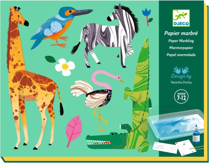 Il set creativo per marmorizzazione del marchio DJECO offre ai bambini un modo divertente per creare motivi di animali unici. Basta far cadere inchiostri colorati sulla superficie dell’acqua, creare i pattern e trasferirli sui supporti. Il risultato sono immagini originali che sembrano dipinte da un artista.