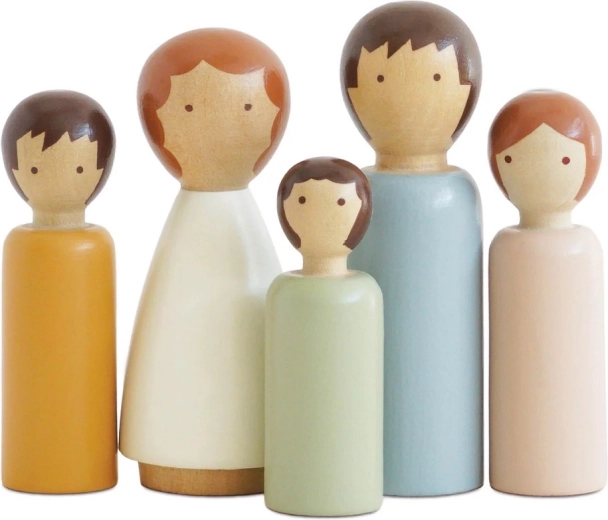 Il set di cinque personaggi è compatibile con le casette per bambole e altri accessori, così da integrarsi facilmente in un mondo di gioco più ampio. È un giocattolo resistente, elegante ed ecologico che favorisce motricità fine, interazione sociale e comunicazione.