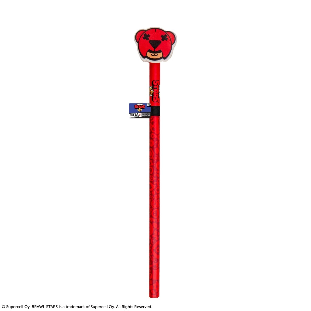 Questa matita BRAWL STARS con licenza, in un vivace colore rosso, unisce uno strumento di scrittura pratico a un design giocoso da collezione. In cima è presente una grande gomma a forma di testa d’orso, simbolo iconico del personaggio Nita, arricchita da dettagli neri per il massimo impatto visivo.