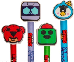 Questa matita con gomma farà felici piccoli e grandi fan di Brawl Stars. Si distingue per il vistoso design verde ispirato a Spike e per i dettagliati motivi di gioco, che donano allo strumento di scrittura un aspetto giocoso. Sul fusto della matita è stampato l’originale logo rosso, che ne conferma l’origine con licenza.