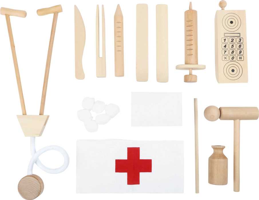 Stetoscopio, termometro, martelletto, siringa e anche un telefono giocattolo favoriscono un gioco del dottore realistico e sviluppano fantasia e competenze sociali.