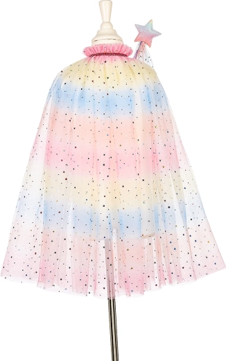 Il set contiene tutto ciò di cui una piccola fata o maga ha bisogno: mantello, cerchietto (diadema) e bacchetta. Perfetto per carnevale, feste di compleanno e per il divertimento quotidiano con i travestimenti.