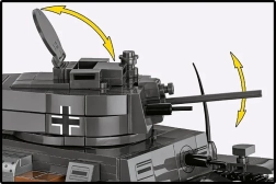 Botole apribili, cannone orientabile, torretta e coperchio motore rimovibili e cingoli realistici per un’ottima esperienza di costruzione e gioco.