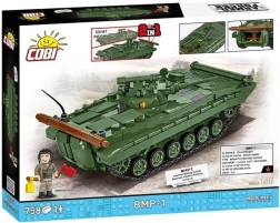 Inclusa una minifigure del comandante in equipaggiamento della RDT con bandierine di segnalazione e un’elegante targhetta con il nome BMP-1 e la scala per esporre il modello.