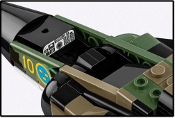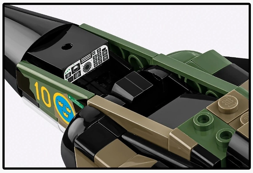 Grazie alle superfici di comando mobili, alle ruote girevoli e alla ricca dotazione – inclusi contenitori con munizionamento a submunizioni Bombkapsel 90 – il modello è perfetto sia per il gioco sia per l’esposizione. Sono inclusi una minifigure di pilota modificata e un supporto da esposizione stabile e regolabile con targhetta del nome, scala e bandiera svedese.
