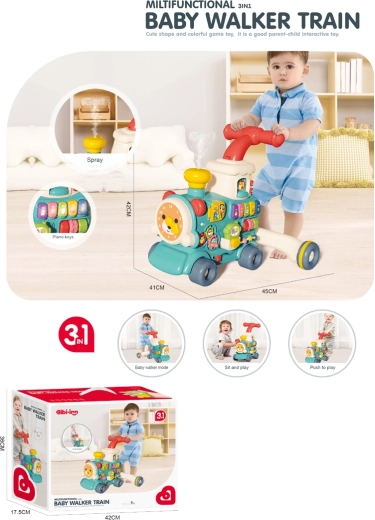 Scoprite il girello e giocattolo spingibile per bambini a forma di locomotiva 3 in 1 in un elegante colore blu, che supporta i primi passi, la motricità e lo sviluppo sensoriale. Grazie ai suoni e melodie integrati motiva al movimento, è leggero e stabile e, grazie alle dimensioni compatte, si ripone facilmente.