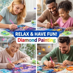 Questo set per pittura diamantata è ideale sia per principianti che per esperti. Grazie alla tela prestampata con legenda e alla penna applicatrice, incolli facilmente le gemme colorate nei punti contrassegnati e, passo dopo passo, crei un quadro scintillante. Non servono abilità artistiche – bastano pazienza e voglia di creare.