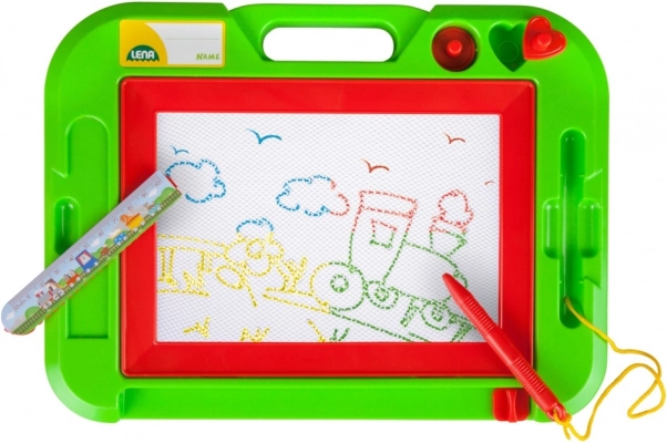 Scoprite un modo divertente e pulito di disegnare senza carta e senza disordine. La lavagna magnetica LENA da 32 cm ha una superficie da disegno a colori che prende vita al tocco della punta metallica. I bambini possono scrivere, disegnare e creare motivi con due timbri magnetici.