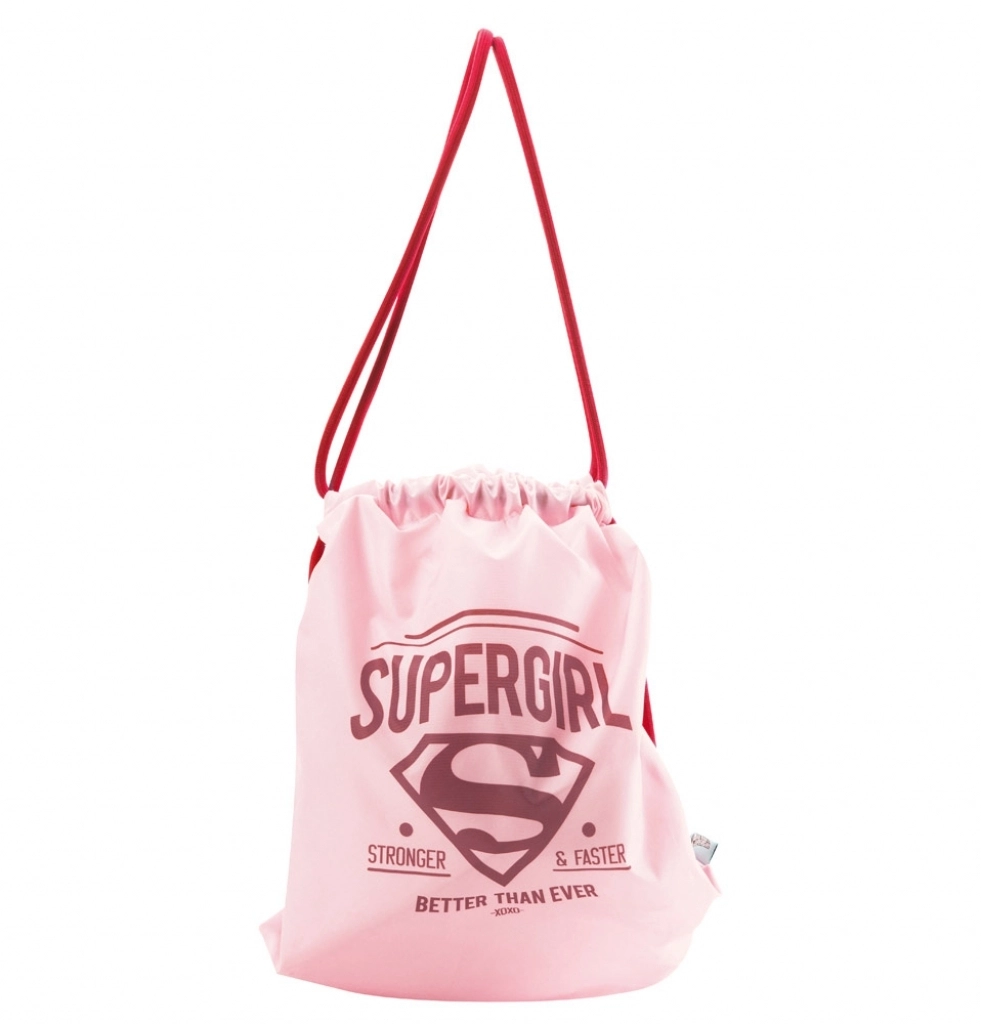 La pratica e trendy sacca zaino con motivo Supergirl è ideale per la scuola, l’allenamento e il tempo libero. Grazie al materiale robusto e lavabile resiste all’uso quotidiano ed è facile da mantenere. I cordini di chiusura fungono anche da spallacci, così chiudi la borsa velocemente e la metti subito in spalla.