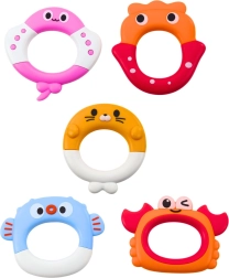 Gli anelli intercambiabili con colori e forme diverse favoriscono la presa, la coordinazione e la scoperta di nuove combinazioni di gioco.