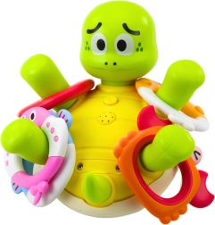 Questa tartarughina interattiva trasforma il bagnetto quotidiano in un momento di gioia. Una volta in acqua, spruzza automaticamente getti vivaci che incuriosiscono i bambini e stimolano la loro esplorazione. Grazie agli anelli intercambiabili e colorati con diverse texture, i piccoli possono personalizzare il gioco e scoprire nuovi modi di divertirsi.