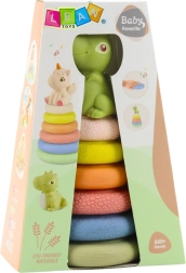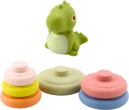 La colorata piramide sensoriale con un simpatico dinosauro è ideale per bambini dai 6 mesi. Include diverse texture per la stimolazione sensoriale, elementi morbidi e sicuri e favorisce la motricità fine, la coordinazione occhio–mano e il ragionamento logico. Il dinosauro in cima emette un suono “squeak” quando viene premuto, incoraggiando l’interazione.
