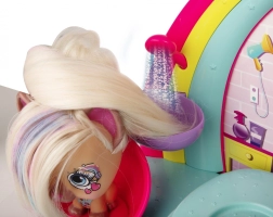 • Gioco da parrucchiere realistico con vero lavatesta e capsula glitter.