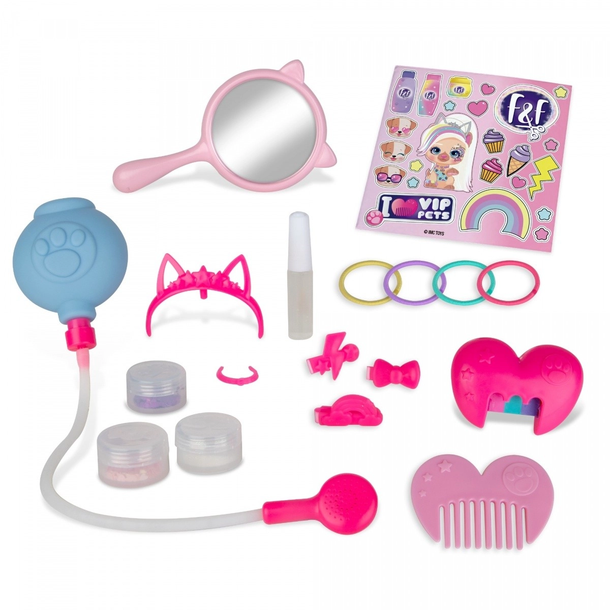 • 15 accessori tra cui pettini, glitter, elastici e mollette.