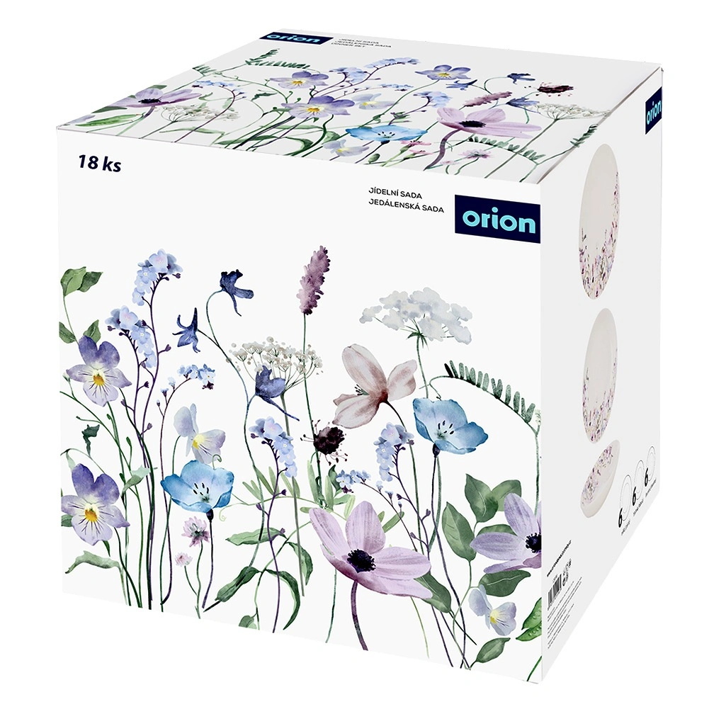 Il set comprende 18 pezzi: 6 piatti fondi, 6 piatti piani grandi e 6 piattini da dessert – tutti coordinati in un design elegante.