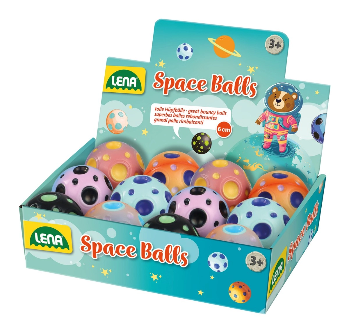 Scopri un divertimento da un’altra galassia con la LENA Space Ball! Morbida pallina in gomma dal diametro di 6 cm, rimbalza alla grande, favorisce movimento e coordinazione ed è ideale per bambini dai 3 anni. Disponibile in sei varianti di colore, spedizione casuale.