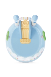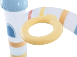 Il Centro giochi Castello dell’Unicorno offre ai bambini rinfresco e tante possibilità di gioco in uno. I colori pastello, il tema del castello magico e le illustrazioni simpatiche creano un’atmosfera piacevole per il divertimento estivo. Tra le due torri si trova un arco con doccia: basta collegare il tubo da giardino per ottenere un delicato getto rinfrescante durante il gioco.