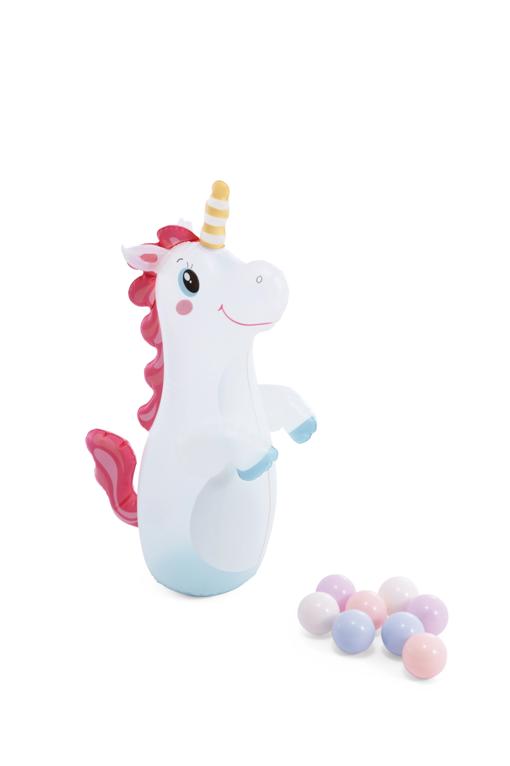 unicorno gonfiabile (punching), cerchio per il lancio, 8 palline colorate